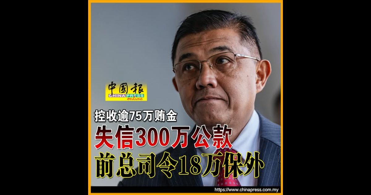 (吉隆坡23日讯)前任武装部队总司令丹斯里莫哈末尼占因滥权收贿和挪用公款面对4项控罪,尽管被告所犯罪行一般不得保释,但控方不反对法官行使酌情权,允许被告保外;法官最终让被告以18万令吉、一名担保人及额外保释条件,保外候审。