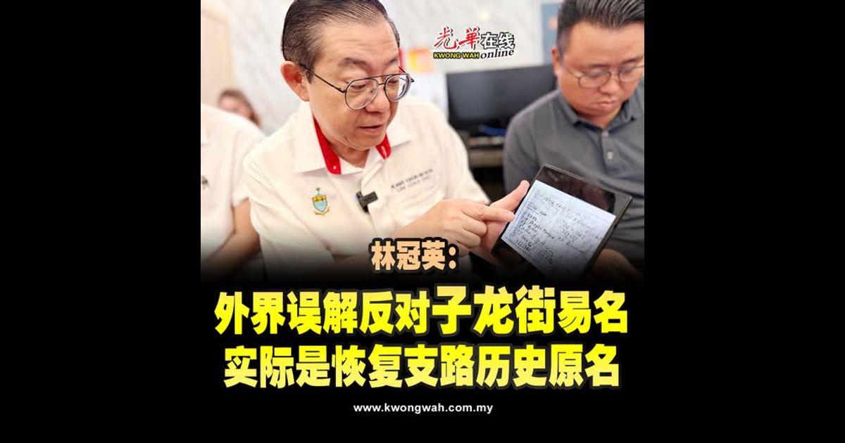 林冠英:外界误解反对“子龙街”易名 实际是恢复支路历史原名