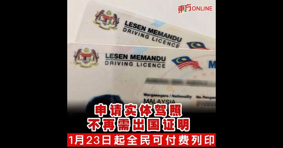 “为减少官僚程序,陆路交通局(JPJ)已受指示不再要求出示出国证明。自2026年1月23日起,将允许列印实体驾照,且无需出示任何出国证明。”