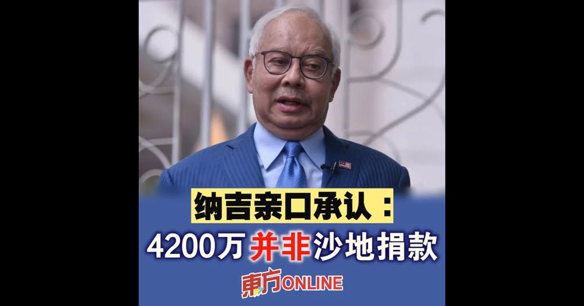 纳吉也承认,在近期的一马发展有限公司(1MDB)案件裁决中,高庭裁定没有任何书面证据支持其“沙地捐款”的辩护。