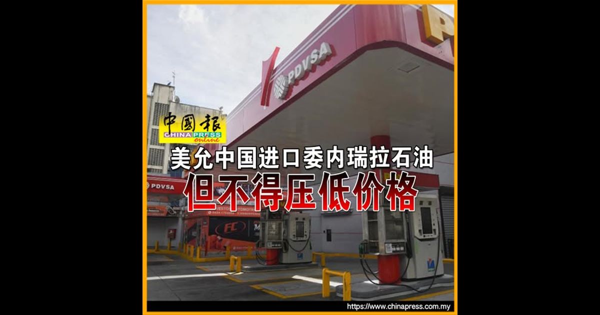 (华盛顿23日综合电)美国官员周四说,特朗普政府允许中国购买委内瑞拉石油,但不得以委内瑞拉前总统马杜罗被推翻前的“不公平、低廉”价格交易。