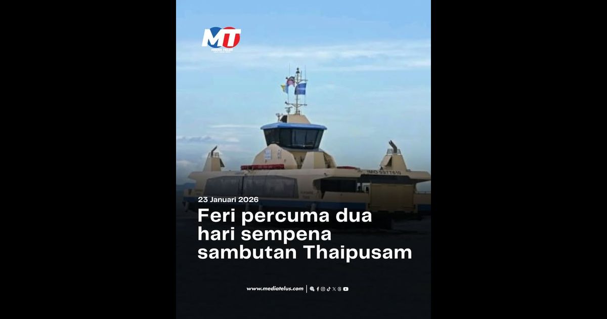 GEORGE TOWN 23 Jan – Penumpang warganegara Malaysia boleh menikmati perkhidmatan feri percuma selama dua hari pada 31 Januari dan 1 Februari ini sempena sambutan perayaan Thaipusam.