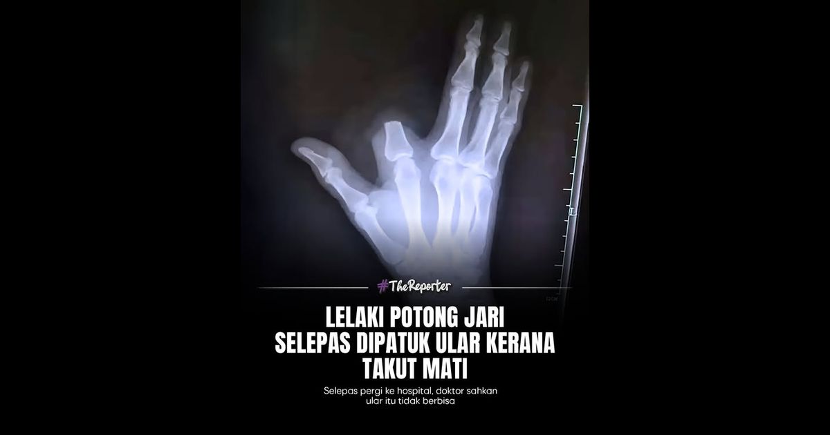 Namun doktor memaklumkan tindakan itu sebenarnya tidak perlu kerana ular berkenaan tidak berbisa, malah mangsa tidak menunjukkan simptom serius ketika tiba di hospital.Mangsa kini pulih di rumah, namun jarinya tidak dapat disambung semula kerana ditinggalkan di lokasi kejadian.Sumber: South China Morning Post