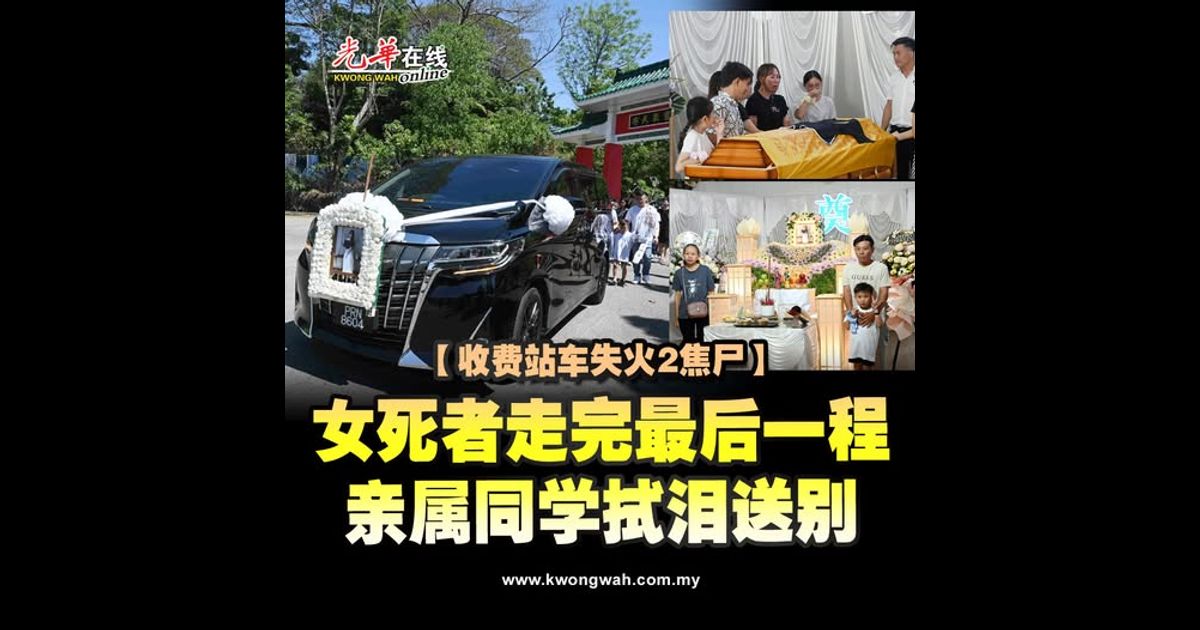 槟城“日得拉收费站轿车起火案”女死者陈慧珊(19岁)周六(1月24日)出殡,在亲友和同学陪伴下,走完人生最后一程,众人难掩悲痛,拭泪送别。
