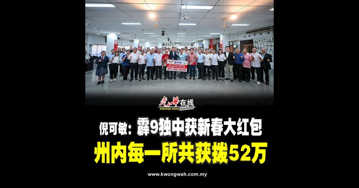 房屋及地方政府部长倪可敏指出,中央政府与霹雳州政府在农历新年前合共拨款52万令吉给州内每一所独中,其中州政府拨出20万令吉,中央政府则拨32万令吉,为霹州9所独中带来“新春大红包”!