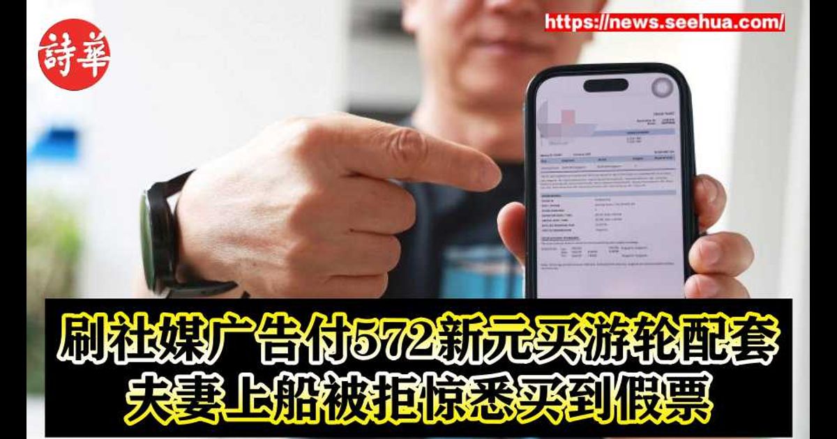 (新加坡24日讯) 男子在面子书上看到邮轮广告,与对方交谈后就转账572新元(约1801令吉),岂料登船当天,却被工作人员告知“上当被骗” ,收到假的邮轮票,对方随后也失联,气得他报警。