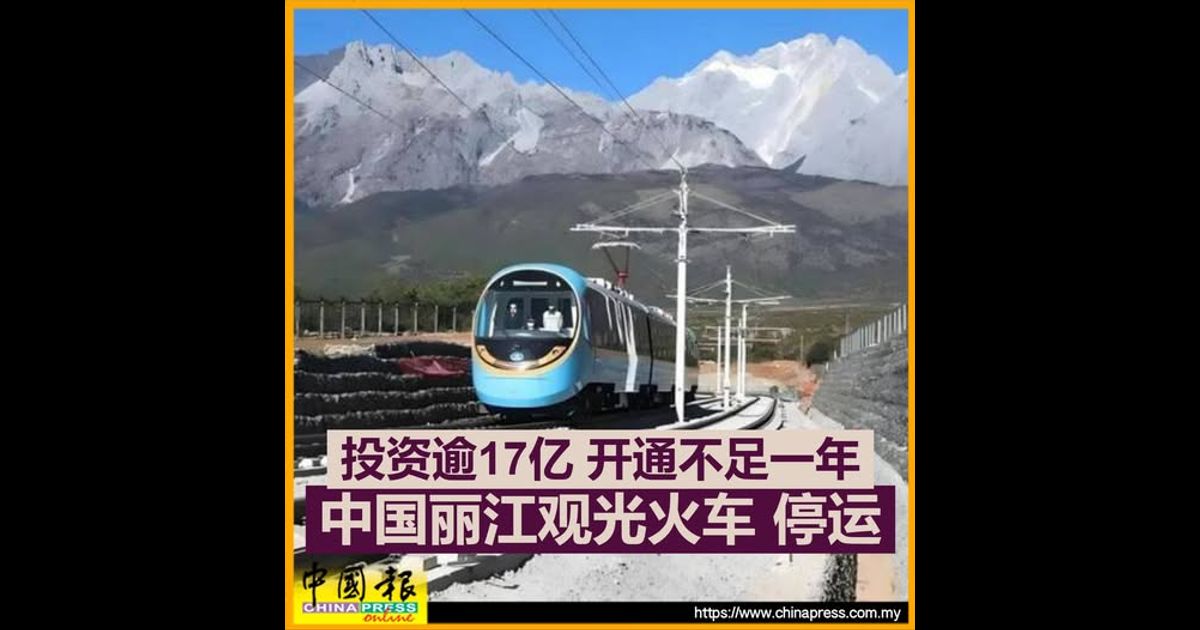 (北京24日综合电)中国云南省丽江市玉龙雪山海拔5596公尺,为当地知名旅游景点。丽江雪山轨道交通有限公司花费30.8亿人民币(约17.6亿令吉),打造相当美观的观光火车(轻轨),然而营运业绩惨不忍睹,未满1年就宣布停运。