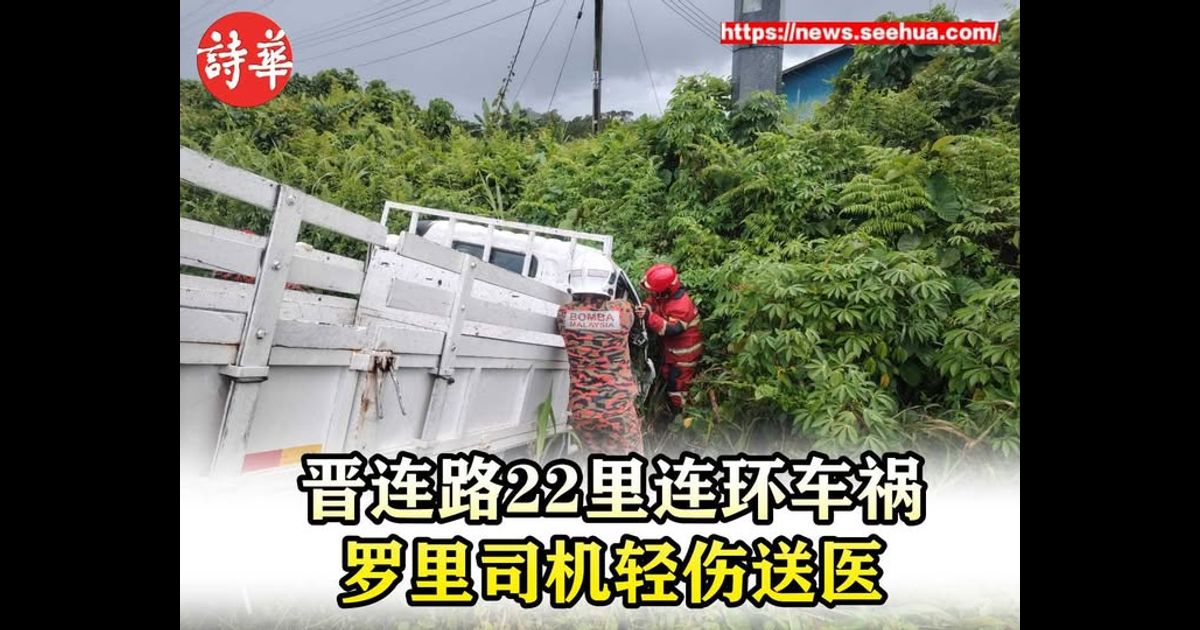 (古晋24日讯)今日中午12时50分左右,古晋晋连路22里路段发生一起连环车祸,一辆罗里先追尾搅拌车,随后失控与一辆迈威轿车碰撞,最终冲入路边草地。