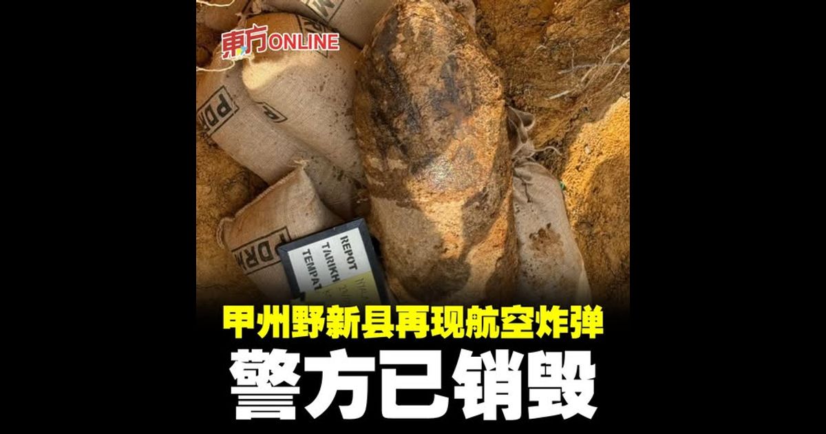 (马六甲24日讯)野新县再发现一枚锈蚀的航空炸弹,警方接获投报后,已引爆及销毁。