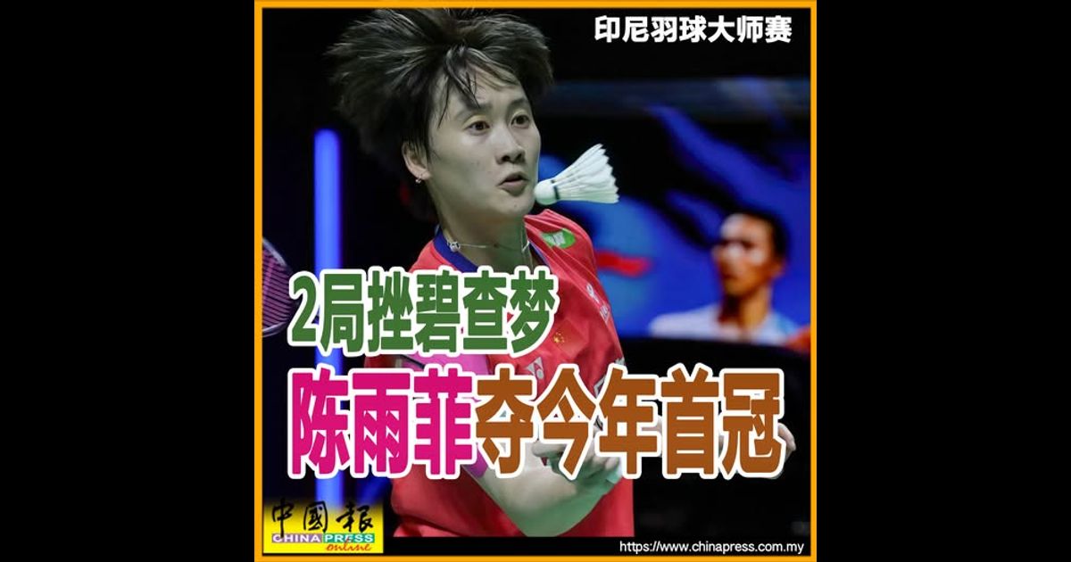 (印尼.耶加达25日综合电)直落两局23比21、21比13击败泰国新星碧查梦,中国27岁名将陈雨菲在印尼羽球大师赛赢得今赛季的首个冠军。