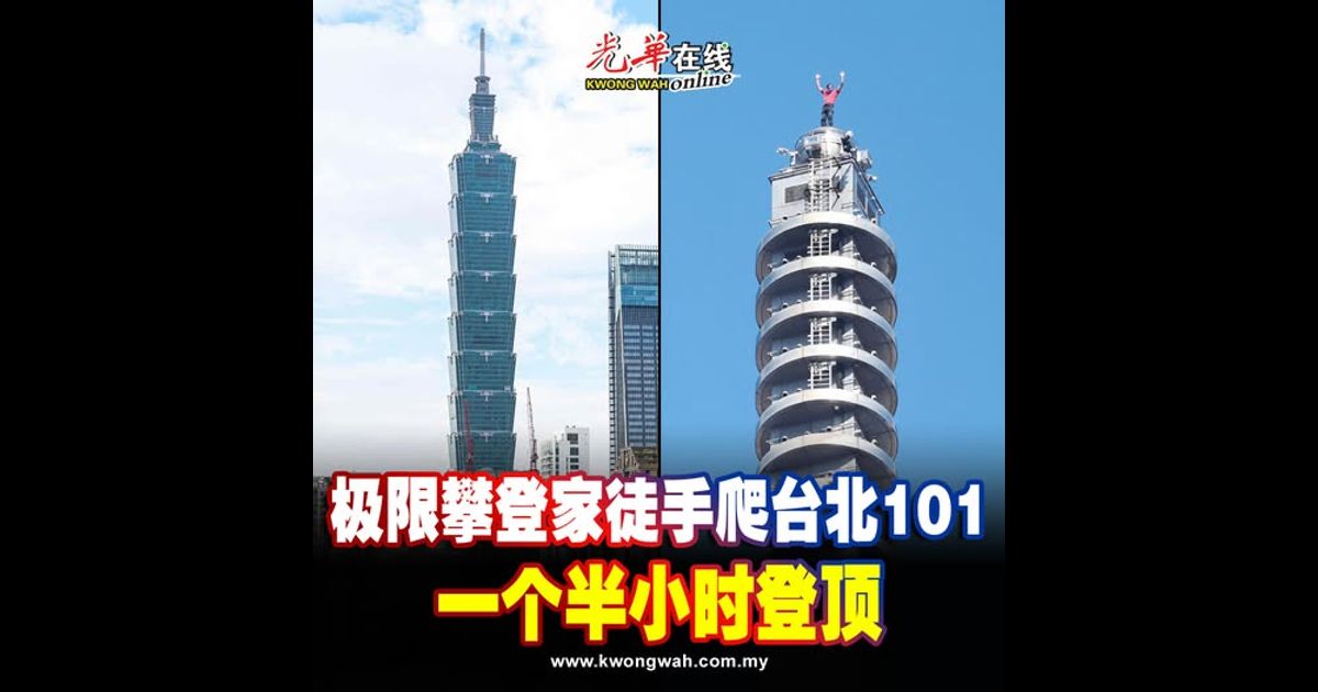 世界知名极限攀登家霍诺德25日徒手攀爬台北101至顶,全程约1小时31分钟。
