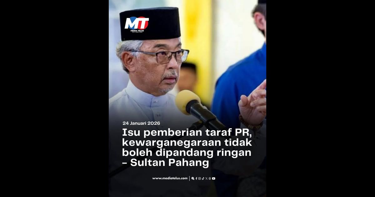 KUANTAN 24 Jan – Isu pemberian taraf penduduk tetap (PR) dan kewarganegaraan perlu ditangani dengan penuh ketegasan, integriti serta berlandaskan kepentingan kedaulatan negara, titah Sultan Pahang, Al-Sultan Abdullah Ri’ayatuddin Al-Mustafa Billah Shah, hari ini.