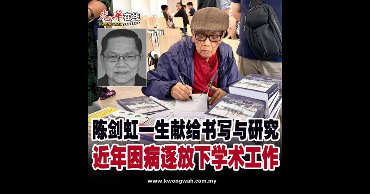 陈剑虹24日晚约11时离世,享年83岁。噩耗传出后,文史界与华社同感惋惜,纷纷悼念这位数十年如一日,为地方史与华人社会研究默默耕耘的学者。 陈剑虹治丧处设于住家,地址为7, Lorong Kenari 14, Desa Ria, Bayan Lepas, Penang。家属择定于1月29日(周四)上午11时举殡,灵柩奉移至槟城峇都眼东联合福建公塚场火化。