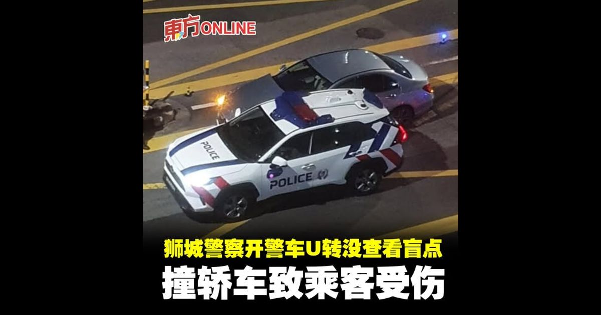 狮城警察开警车U转没查看盲点 撞轿车致乘客受伤