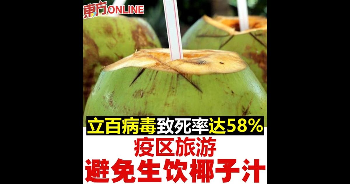林明诚特别提醒,民众赴海外旅游时常饮用新鲜椰子汁,若椰子曾被果蝠啃咬,可能提高感染机率。