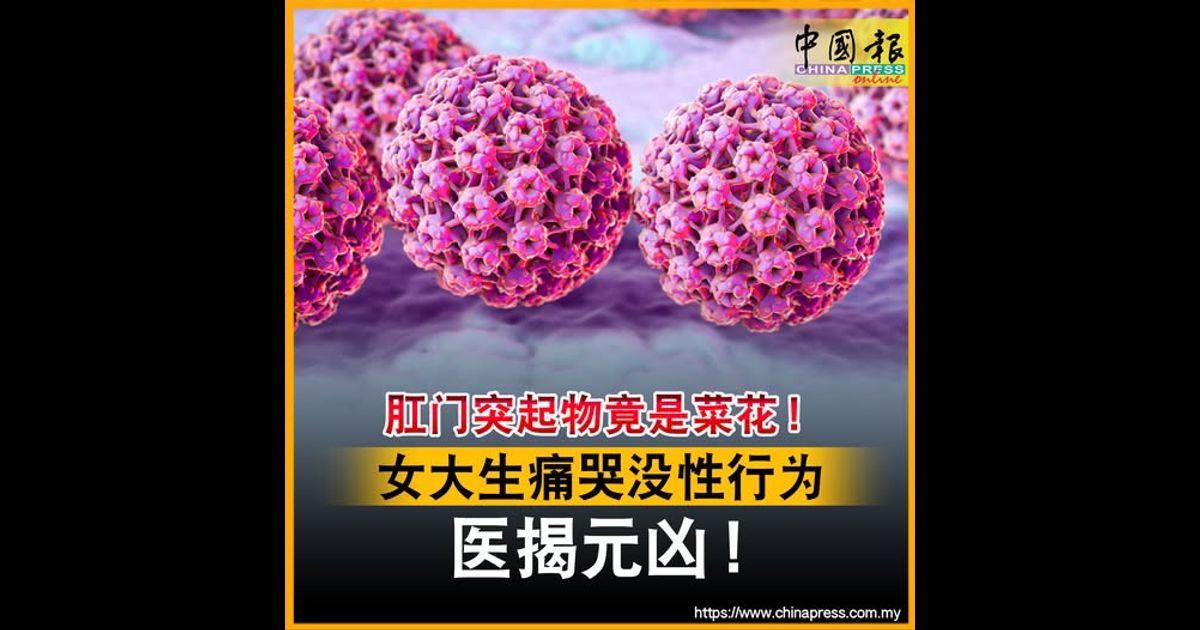 柳朋驰医生后来透过内诊检查,才确定女子肛门口突起表征,是典型的“人类乳突病毒(HPV)感染”,也就是俗称的“菜花”,女大生为此当场痛哭,不解自己没有男友也没有性经验,为何会染病?后来经过医生仔细询问,患者才忆起在泰国旅游时,体验了“按摩与三温暖设备”。