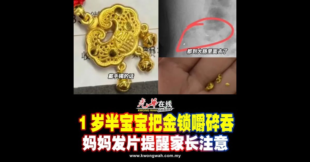 中国贵州贵阳的刘女士近日在社交平台发布视频称,她一岁五个月的儿子把啃碎金锁铃铛被,部分已吞进肚子。
