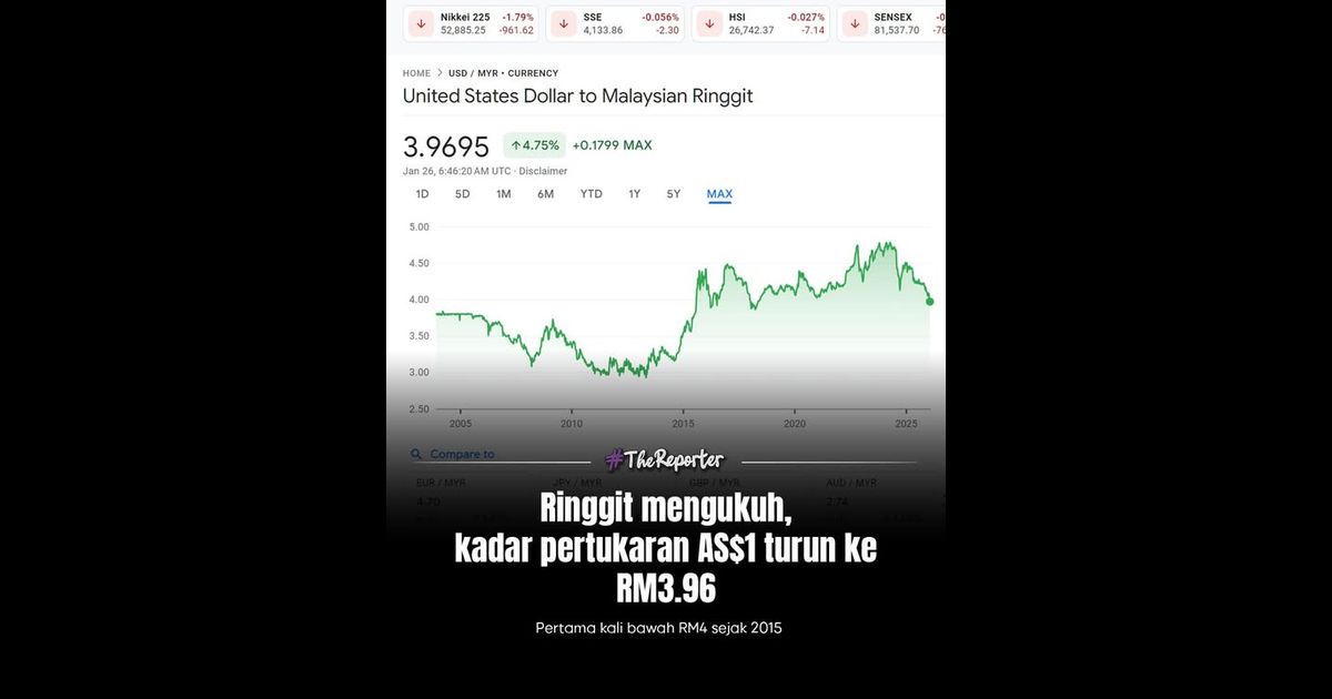 Trend penurunan USD/MYR yang berterusan kebelakangan ini turut mencerminkan sentimen pasaran yang semakin memihak kepada mata wang tempatan.Prestasi ringgit ini turut dikaitkan dengan ketidaktentuan politik dan ekonomi di Amerika Syarikat, termasuk kenyataan serta tindakan kontroversi Presiden Donald Trump yang mencetuskan kebimbangan geopolitik melibatkan Kesatuan Eropah dan Kanada, sekali gus memberi tekanan kepada dolar AS di peringkat global.Sumber: Google Finance