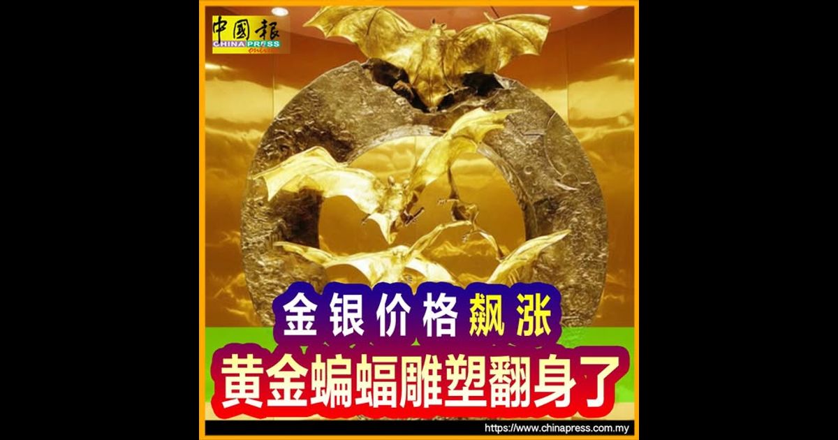 如今随着金价每盎司一度冲破5100美元(约2万169令吉),白银也创下每盎司逾100美元(约395令吉)的历史新高,让蝙蝠雕塑身价跟着飙涨。