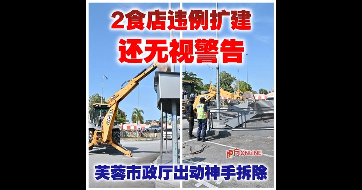 (芙蓉27日讯)芙蓉新城商业中心2间商店因违例扩建霸占公共保留地,遭芙蓉市政厅展开拆除行动对付。