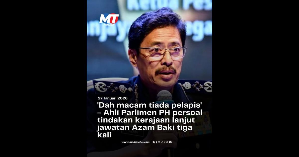 KUALA LUMPUR 27 Jan – Isu lanjutan tempoh perkhidmatan Ketua Pesuruhjaya Suruhanjaya Pencegahan Rasuah Malaysia (SPRM), Tan Sri Azam Baki, kembali dibangkitkan di Dewan Rakyat apabila kerajaan digesa menjelaskan rasional di sebalik pelantikan semula beliau sebanyak tiga kali bagi mengelakkan persepsi negatif terhadap kebebasan institusi itu.