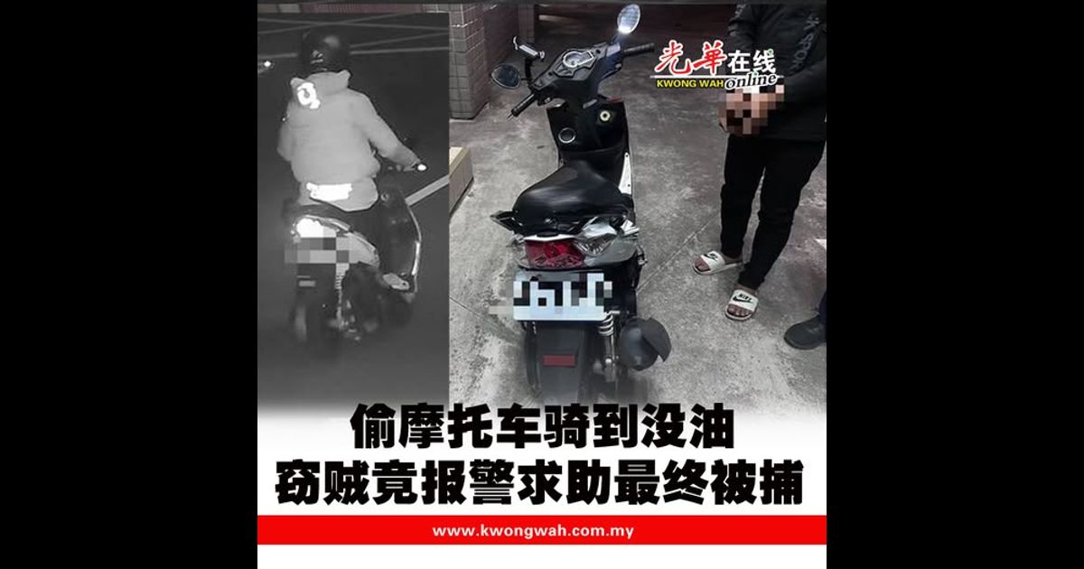 台湾一名窃贼偷走一部摩托车后四处逃窜,结果在半路没油了,停在加油站求助无门,竟异想天开报警求助,要求警方“为民服务”帮他加油。结果警方到场后发现他所骑的是失窃摩托车,当场将他逮捕,更在车内查获另一面失窃车牌及手机,令这起“求助案”瞬间变成刑事案件。