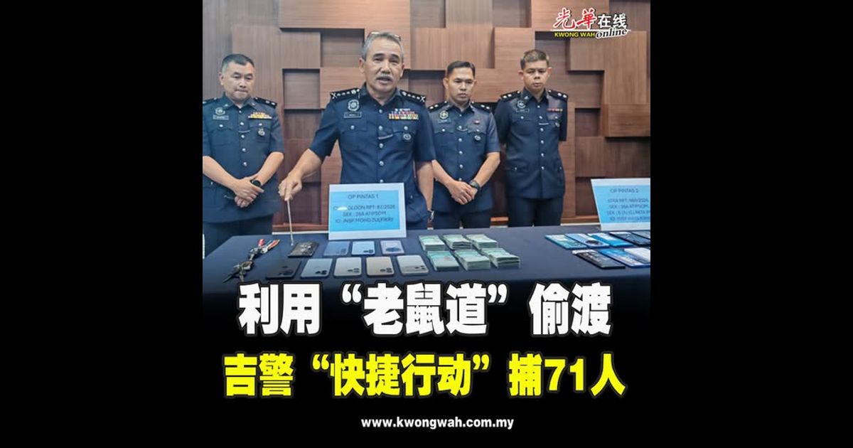 吉打州偷渡活动日益猖獗,为遏制非法入境问题,警方于今年1月展开3项“快捷行动”,共逮捕71人,包括59名来自缅甸的非法入境者,3名本地中介及9名缅甸藉中介。