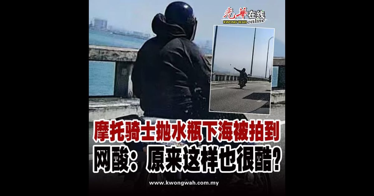 一名驾驶者日前在社交媒体分享一段于槟城大桥拍摄的视频,画面显示一名摩托骑士将水瓶抛入海中,引发网民关注。