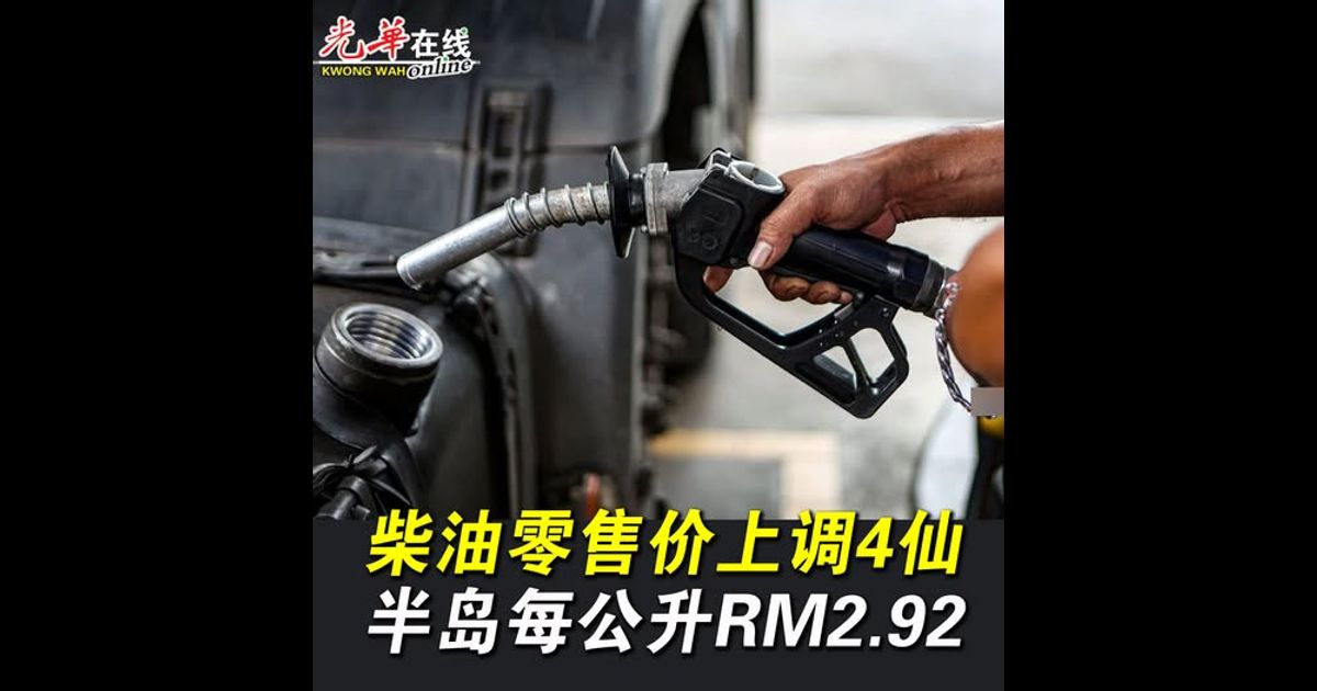 ·半岛柴油:每公升上调4仙至2令吉92仙;