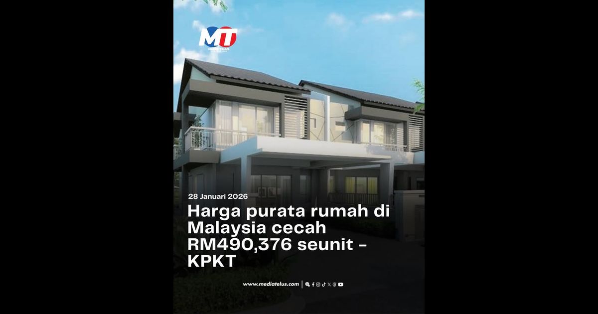 KUALA LUMPUR 28 Jan – Harga purata rumah di Malaysia setakat separuh tahun pertama tahun lalu direkodkan pada RM490,376 seunit apabila Indeks Harga Rumah Malaysia (IHRM) berada pada paras 227.3 mata.