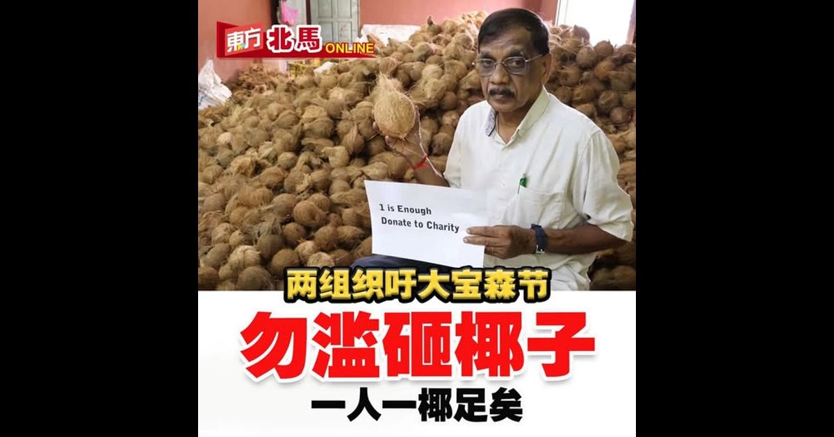 “我们不是反对宗教仪式,而是希望信众能适度而行,一人一椰足矣,馀款施助弱势,更合乎宗教教诲。”