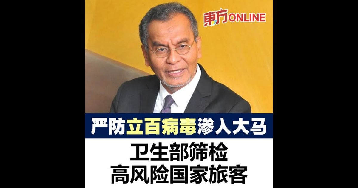 (万宜29日讯)卫生部正对来自高风险国家的入境旅客进行重点筛检,特别是来自印度与孟加拉的旅客,作为加强我国应对立百病毒(Nipah virus)潜在传播风险的初步措施。