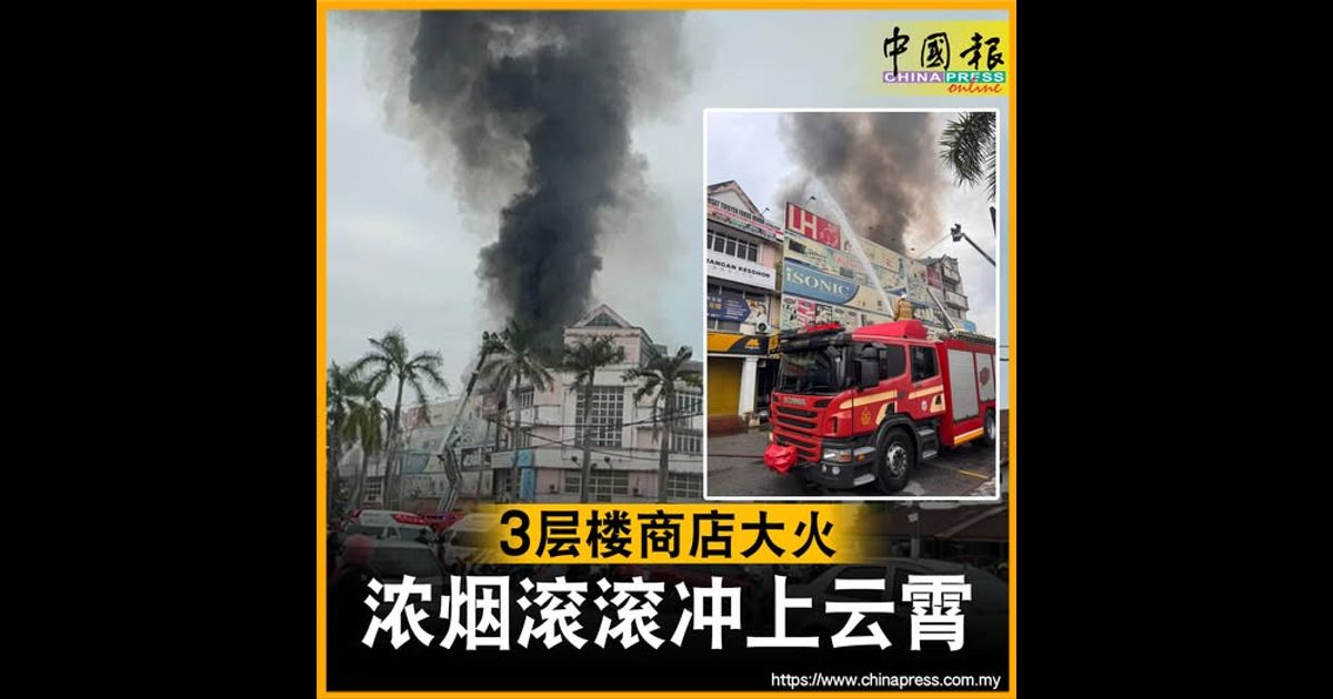 (大山脚29日讯)商业中心一间3层楼便利商店,今早突发大火,火势一发不可收拾,瞬间蔓延,现场浓烟滚滚。