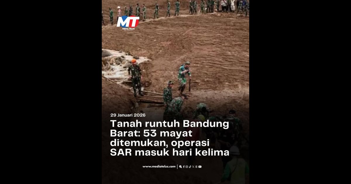 JAKARTA 29 Jan – Angka korban akibat kejadian tanah runtuh di Bandung Barat, Jawa Barat terus meningkat apabila sebanyak 53 mayat ditemukan setakat ini, ketika operasi mencari dan menyelamat (SAR) memasuki hari kelima pada Rabu.