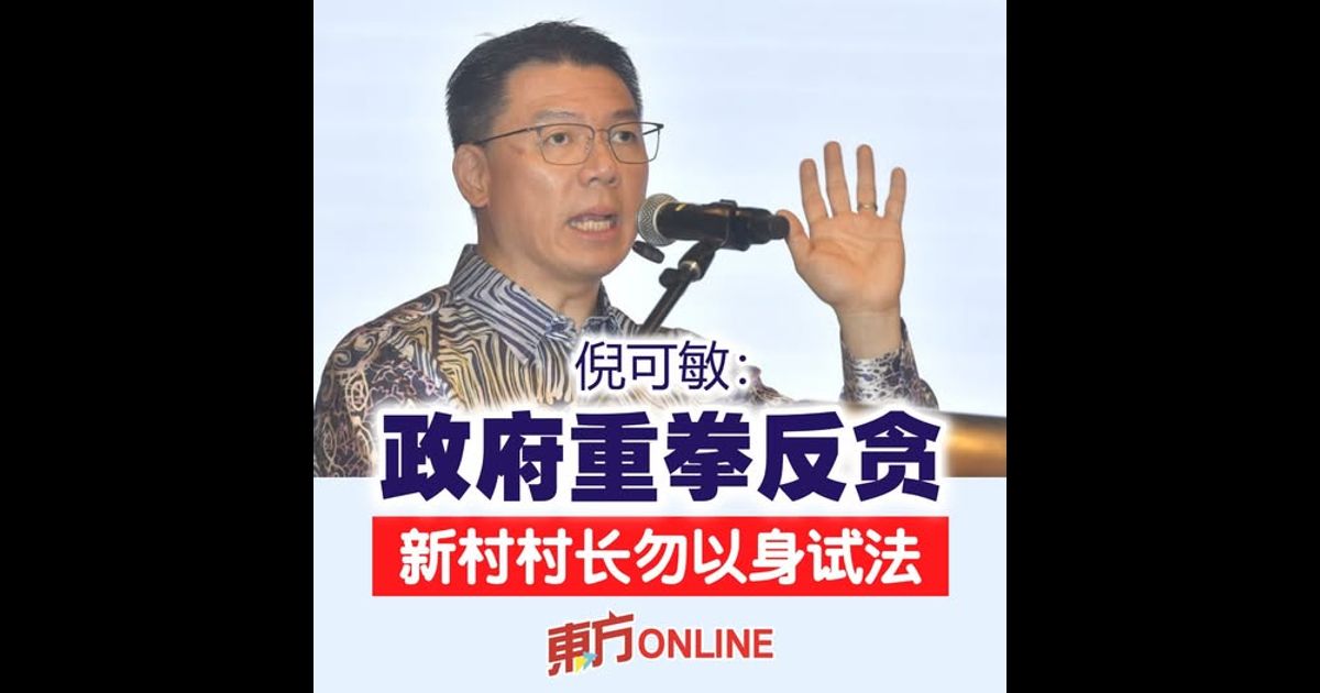 (布城30日讯)房屋与地方政府部长倪可敏指出,政府正在持续重拳打击贪腐,提醒广大新村村长不要以身试法。