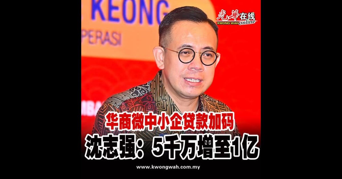 企业发展及合作社部长沈志强宣布,华商微中小型企业贷款从5000万令吉,增加到1亿令吉!