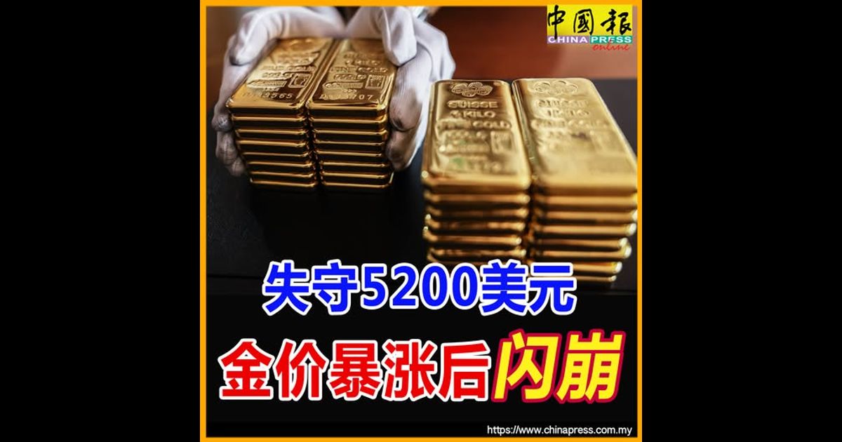 大马时间周五,金价于早盘一度走高,随后却再度转跌,失守5200美元大关。