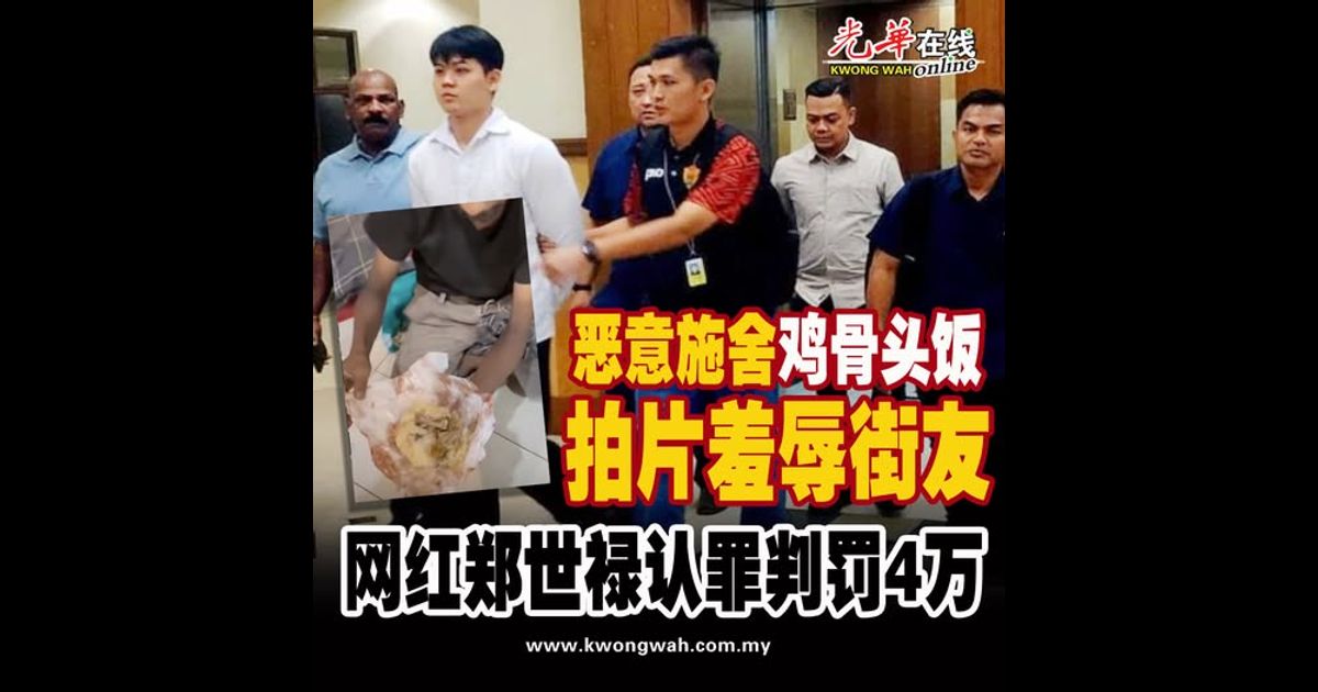 恶意施舍街友“鸡骨头”并发布视频的网红“Aluk”郑世禄,今天在地庭俯首认罪后,遭罚款4万令吉。