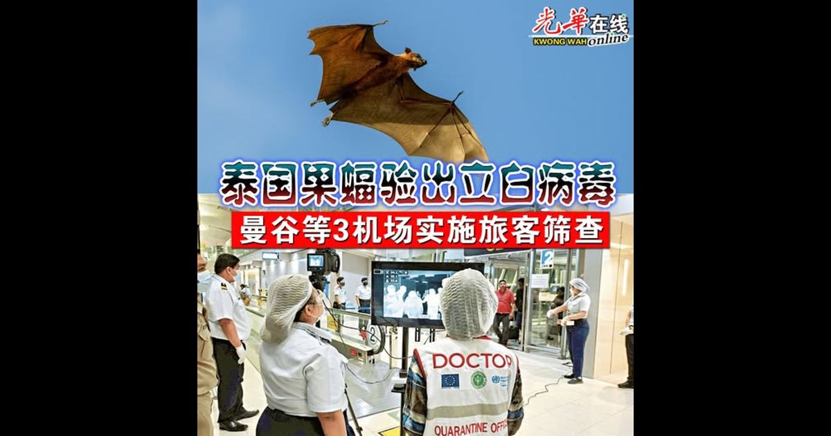 泰国公共卫生部门发出警报,指当地部分果蝠被验出带有致命“立白病毒”。虽然泰国境内目前尚未录得人类确诊个案,但当局不敢掉以轻心,已即时禁止在蝙蝠栖息地设立养猪场,并在各大国际机场加强对疫区入境旅客的筛查,严防病毒跨国渗入。