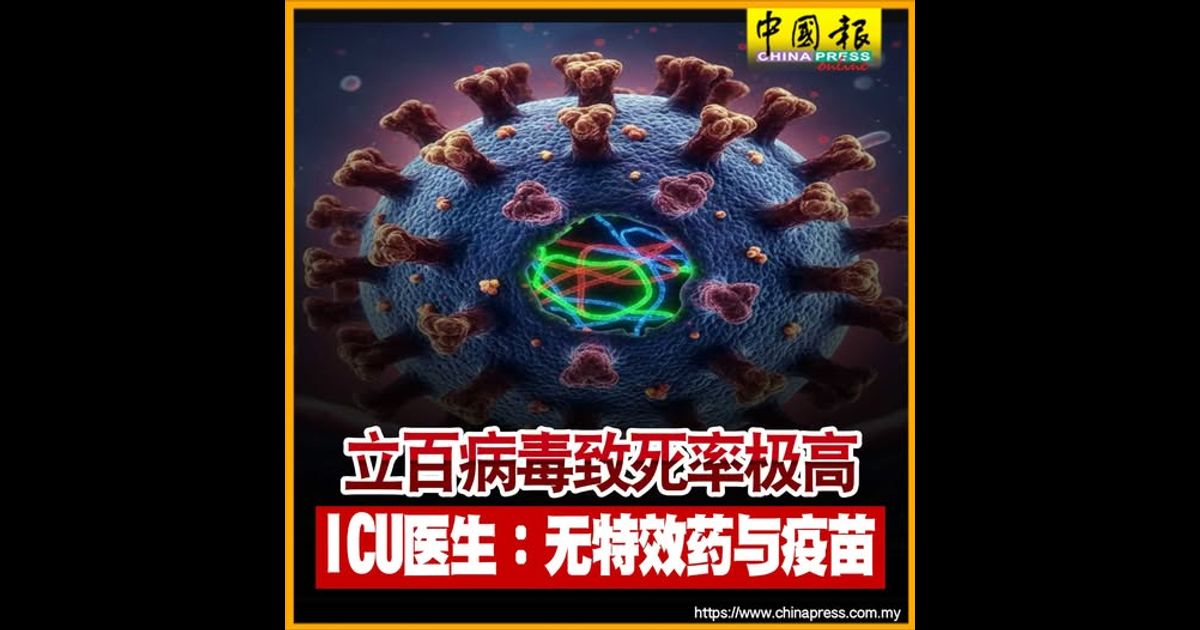 (吉隆坡29日讯)近期,印度及孟加拉等地出现立百病毒疫情,引起各国防疫单位高度警觉。ICU医生陈志金撰文提醒,这种源自大马、致死率极高的人畜共通传染病,目前无特效药与疫苗,民众需提高认知并采取预防措施。