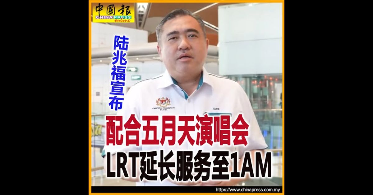 五月天将于武吉加里尔国家体育场(National Stadium Bukit Jalil)开唱,陆兆福在社媒贴文说,明天是属于五月天的夜晚,因此轻快铁将延长服务至凌晨1时,粉丝们不必担心散场后的回程。