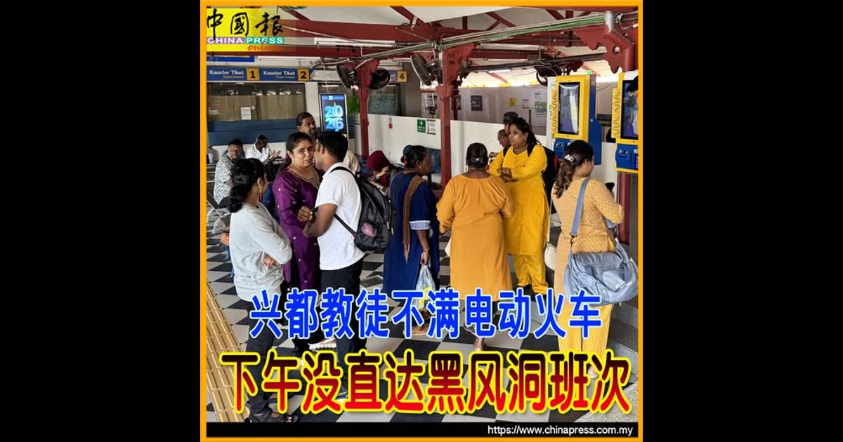 (芙蓉31日讯)马来亚铁道公司未提前公布从芙蓉直达黑风洞的电动火车班次,导致大批兴都教徒前往火车站时发现,下午时段并无直达黑风洞的列车班次,对此感到不满。