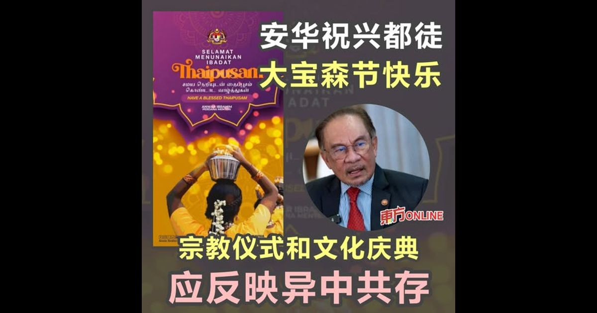 (吉隆坡31日讯)首相拿督斯里安华祝福兴都教徒大宝森节快乐。