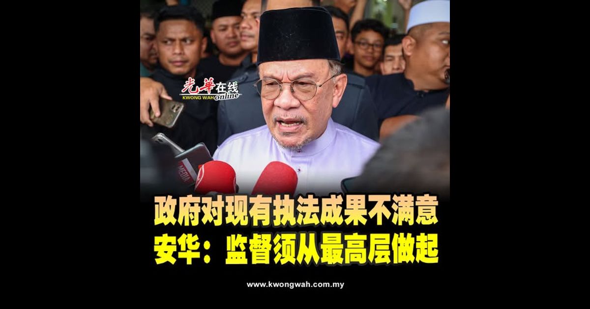 首相拿督斯里安华指出,加强执法和监督工作务必从各政府部门秘书长、各局长官,包括内阁部长着手,因为最薄弱的环节往往始于最高层。