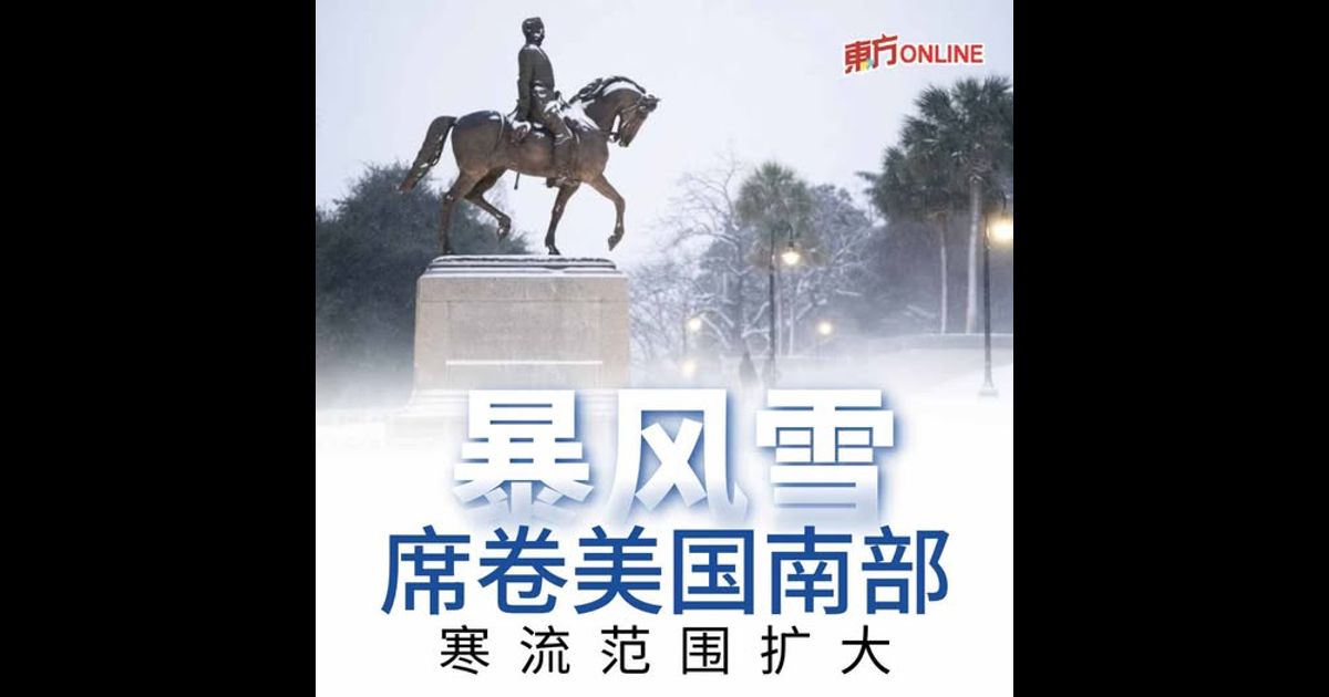 (华盛顿1日讯)一场强劲的暴风雪当地时间周六(31日)袭击了美国南部各州,交通瘫痪,气温骤降至摄氏零下。在一些不常经历极端冬季气候的地区,致命的天气状况愈演愈烈。