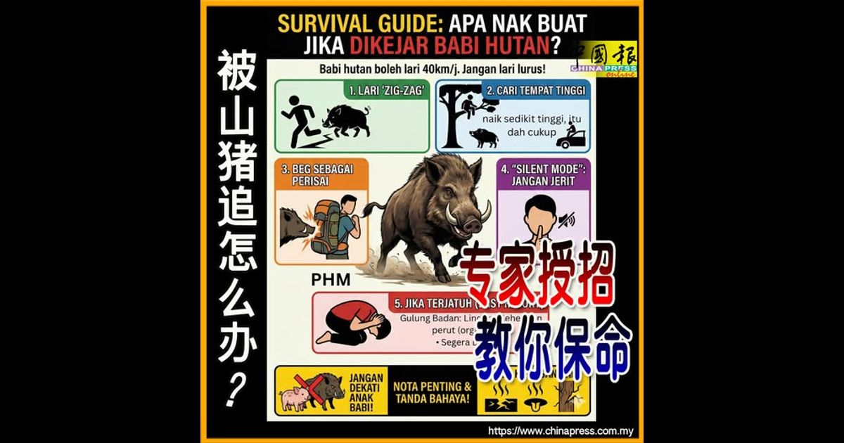 (吉隆坡1日讯)万一被山猪追着跑,到底该怎么做才能保命?