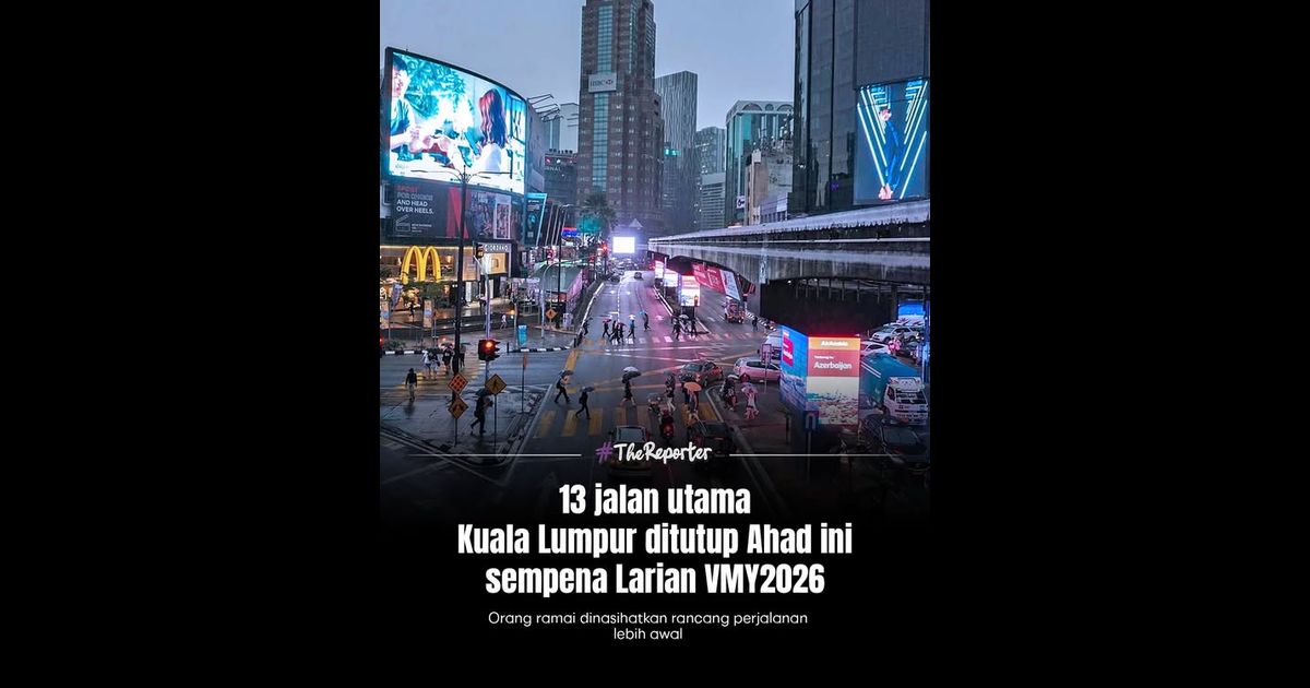 13 jalan utama di pusat bandar Kuala Lumpur akan ditutup dan dilencongkan secara berperingkat Ahad ini sempena Program Larian Visit Malaysia Year 2026 (VMY2026) bagi memastikan keselamatan peserta dan kelancaran trafik.