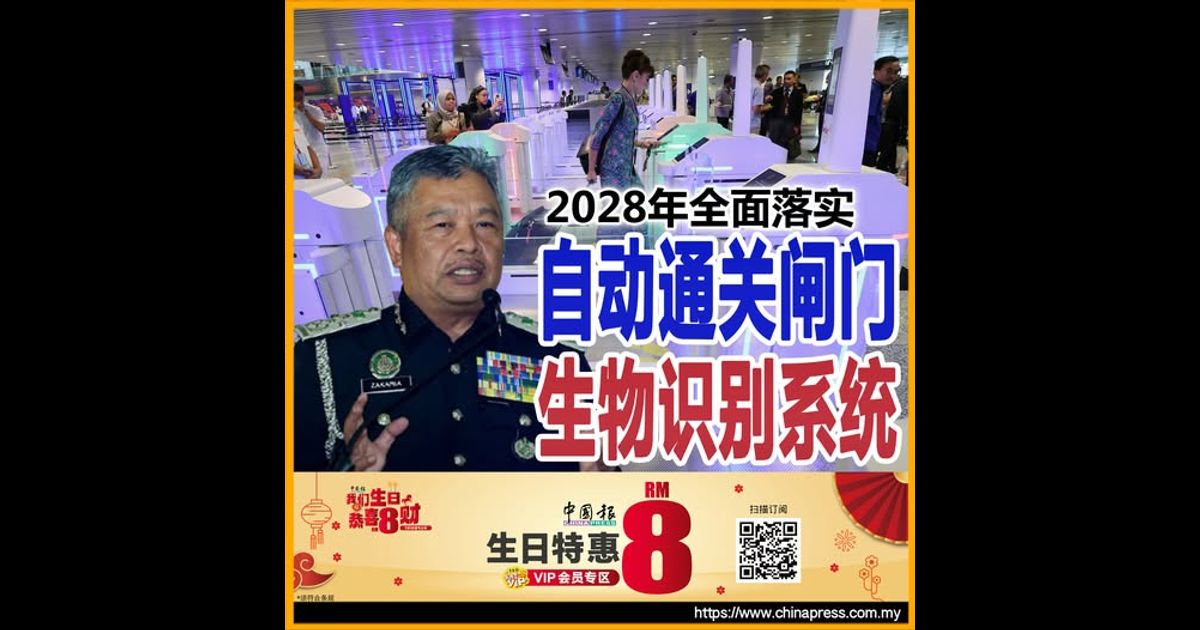 (哥打峇鲁1日讯)我国所有入境处包括在大马边境管制与保护机构(AKPS)协调之下的关税、移民、检疫及安全大厦(ICQS),在2028年全面落实自动通关闸门和生物识别系统,将加强移民检查标准作业程序。
