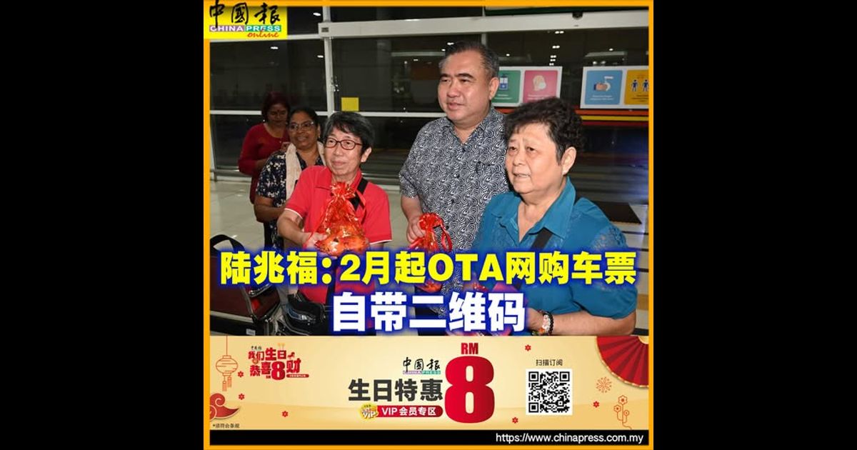 (吉隆坡3日讯)交通部长陆兆福宣布,2月起隆市南湖镇综合交通终站(TBS)全面落实二维码车票系统,乘客无需再到柜台排队换票,以进一步减少柜台拥堵问题。