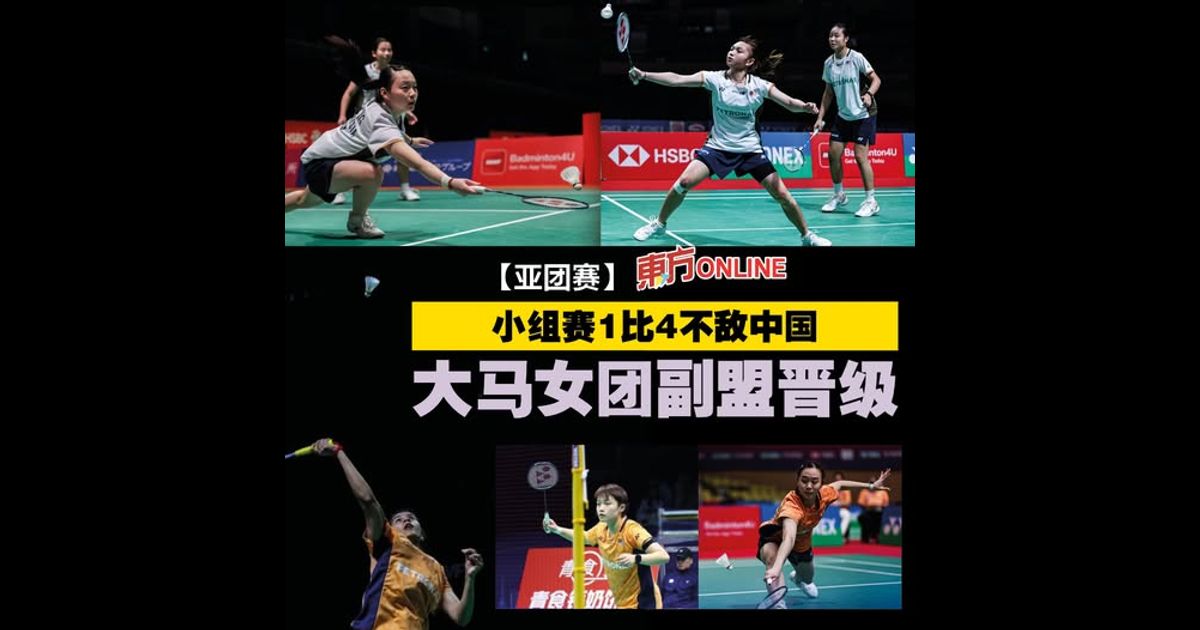 (青岛4日讯)亚洲羽球团体赛W组赛事,大马女团以1比4不敌东道主中国,以副盟晋级8强。